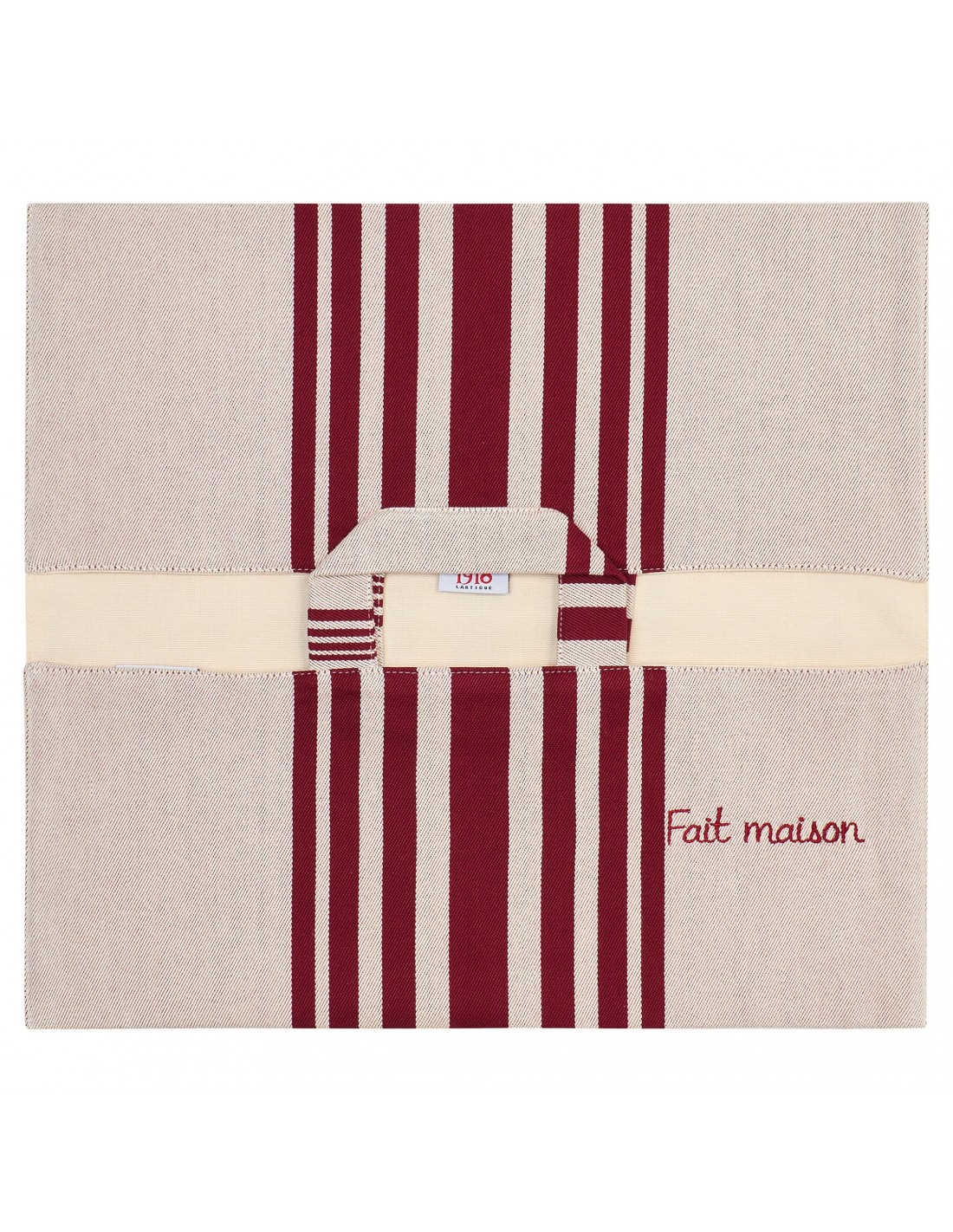 The flat pie holder Marra Raisin is made of 100% cotton twill fabric, with a 100% cotton plain brown lining.